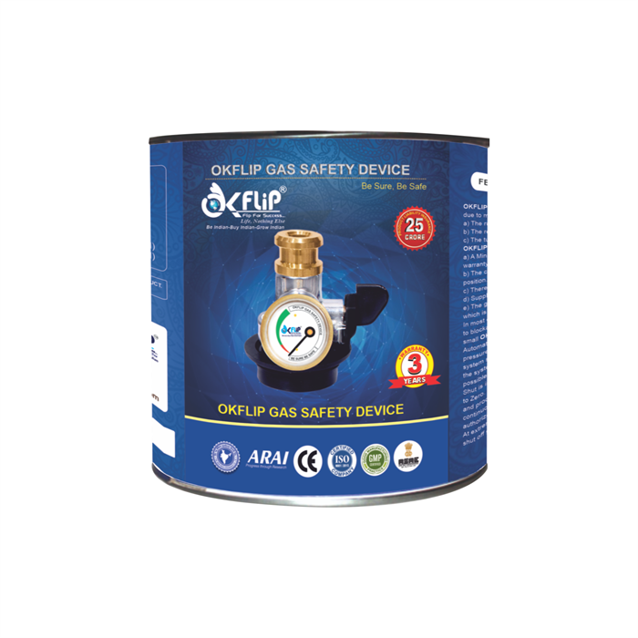 3. Attach the Device: Place the Okflip Gas Safety Device on top of the gas cylinder's valve.Push it down firmly and rotate it clockwise to secure it in place. Ensure it's tightly sealed.